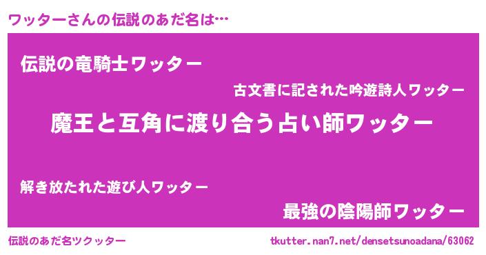 | ヒーロー風カッコイイあだ名 | 『最強戦士ワッター』『スーパーワッター』 |