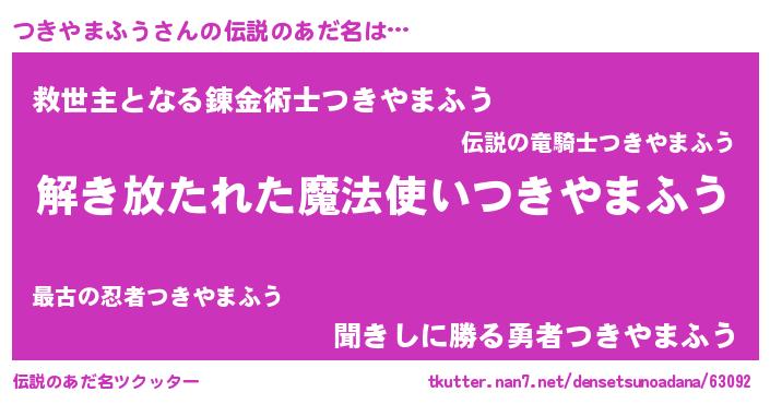 | ヘコむあだ名 | 『つきを』『つきやまふう(苦笑)』 |