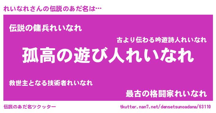 | 意味不明あだ名 | 『住所不定無職れいなれ(71歳)』 |