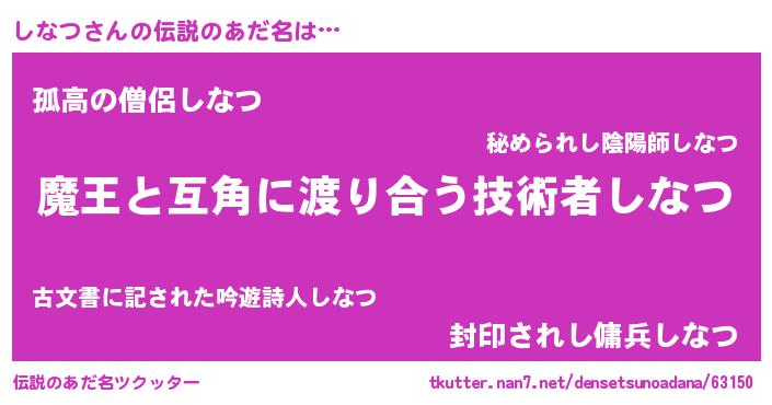 | 女子向けラノベタイトル風あだ名 | 『しなつ恋絵巻』『しなつは平凡を望む』 |
