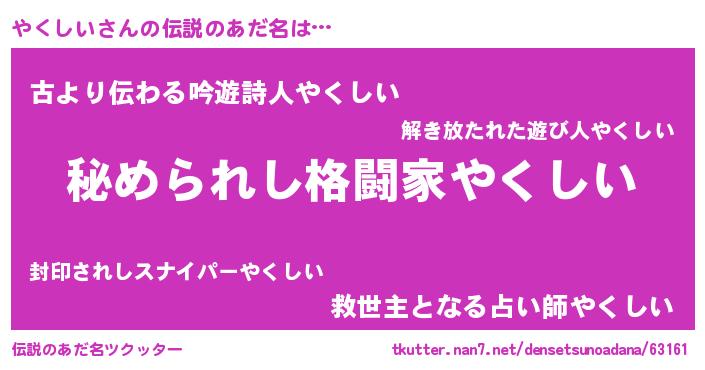 | ヒーロー風カッコイイあだ名 | 『仮面ヤクダー』『ウルトラやくしいマン』 |