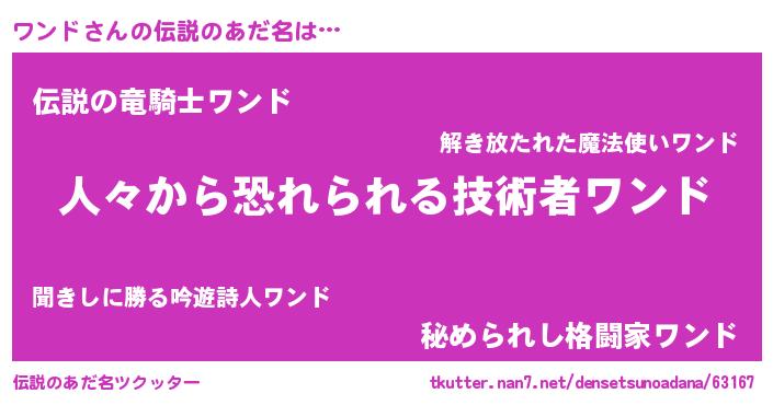 | ヒーロー風カッコイイあだ名 | 『ウルトラ戦士ワンド』『スーパーワンド』 |