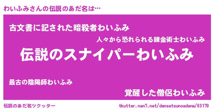 | 胡散臭い通販商品みたいなあだ名 | 『必ず成功する霊験あらたかなお札…その名も「わいふみ」』 |