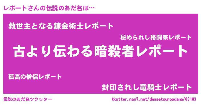 | ヒーロー風カッコイイあだ名 | 『仮面レポダー』『ネオレポート』 |