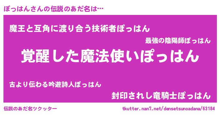 | 意味不明あだ名 | 『自称ぽっはん』『ペロリンぽっはん』 |