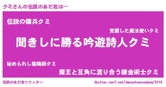 | 男性向けラノベタイトル風あだ名 | 『クミという概念が存在しない退屈な世界 』 |