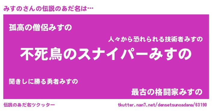 | 意味不明あだ名 | 『住所不定無職みすの(77歳)』 |