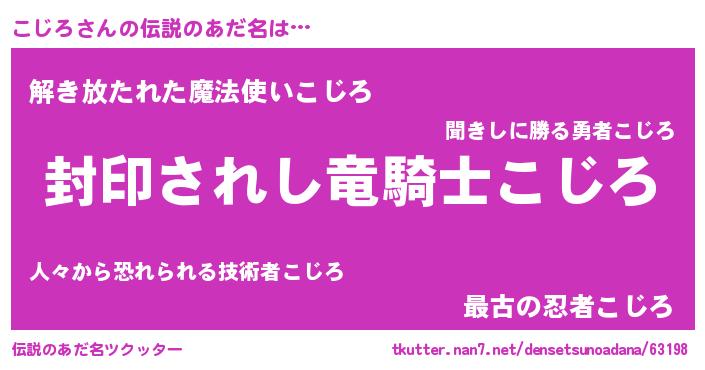 | ヒーロー風カッコイイあだ名 | 『スーパーコジロ』『暗黒騎士コジ』 |