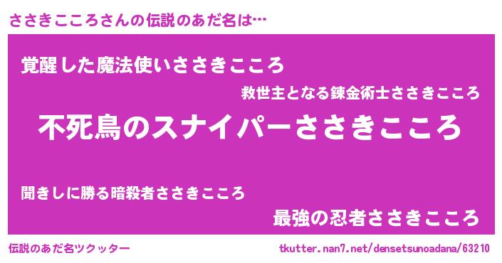 | ヒーロー風カッコイイあだ名 | 『スーパーササキココロ』『天弓騎士ササ』 |
