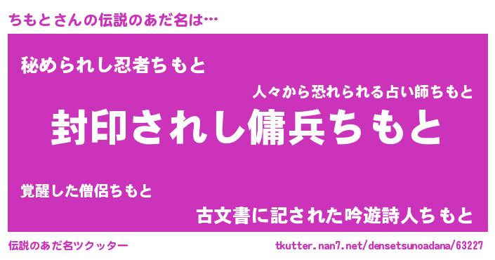 | 男性向けラノベタイトル風あだ名 | 『ちもとに滅ぼされるだけの簡単なお仕事です』 |