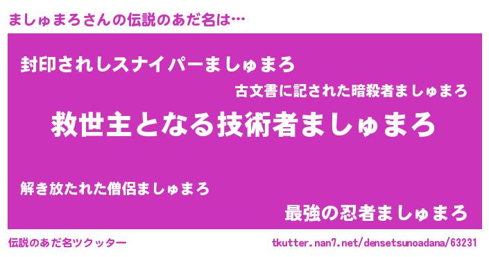| ヒーロー風カッコイイあだ名 | 『慈愛の使者ましゅまろ』『仮面マシダー』 |