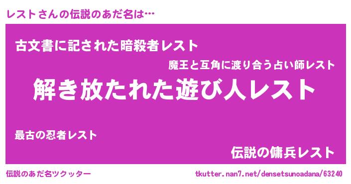 | ヒーロー風カッコイイあだ名 | 『サイバー戦士レスト』『天弓騎士レス』 |