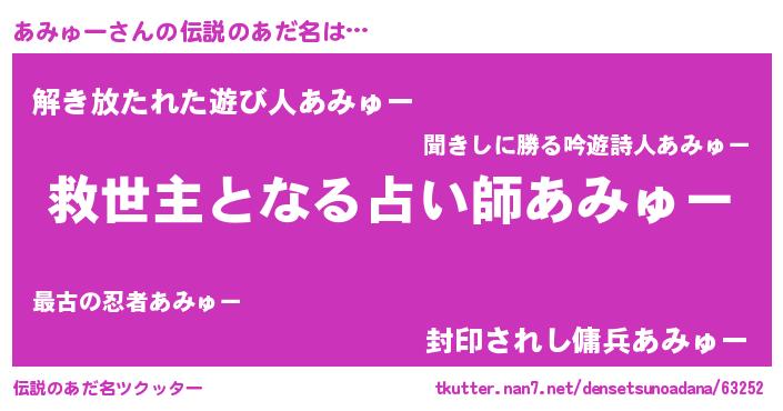 | ヒーロー風カッコイイあだ名 | 『最強戦士アミュー』『愛の使者あみゅー』 |