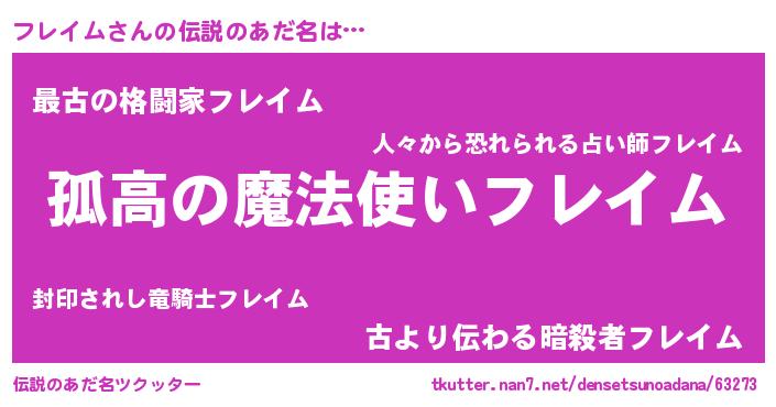 | 女子向けラノベタイトル風あだ名 | 『フレイムは平凡を望む』『闇のフレイム』 |
