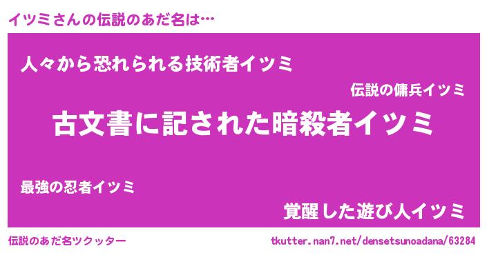 | ヒーロー風カッコイイあだ名 | 『ネオイツミ』『正義の使者イツミ』 |