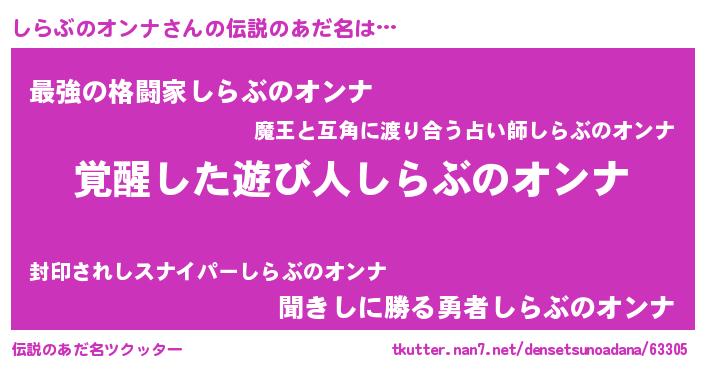 | ヒーロー風カッコイイあだ名 | 『最強戦士シラブノオンナ』 |