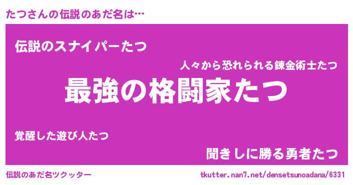 | 男性向けラノベタイトル風あだ名 | 『うちの娘の為ならば、俺はもしかしたらたつも倒せるかもしれない。』 |