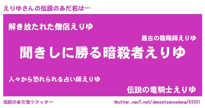 | 意味不明あだ名 | 『永久保存えりゆ』『ペロリンえりゆ』 |