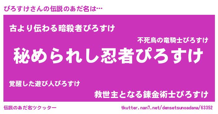 | 男性向けラノベタイトル風あだ名 | 『やはりぴろすけの青春ラブコメはまちがっている 』 |