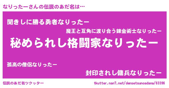 | ファンタジー風あだ名 | 『エターナルナリッターー』『ゼナリトゥ』 |