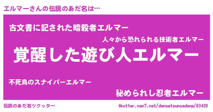 | 男性向けラノベタイトル風あだ名 | 『エルマーの嫁は女の子じゃないと思った?』 |