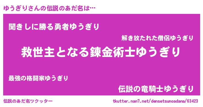 | ヘコむあだ名 | 『ゆうぎり(遠い目)』『ゆうっふぃ~』 |