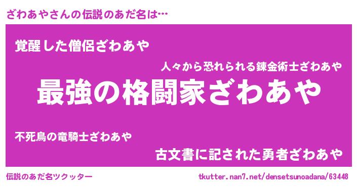 | 男性向けラノベタイトル風あだ名 | 『ざわあやに滅ぼされるだけの簡単なお仕事です』 |