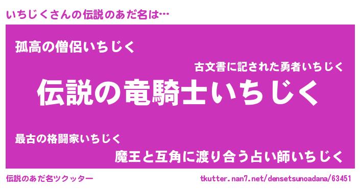 | 意味不明あだ名 | 『住所不定無職いちじく(2歳)』 |