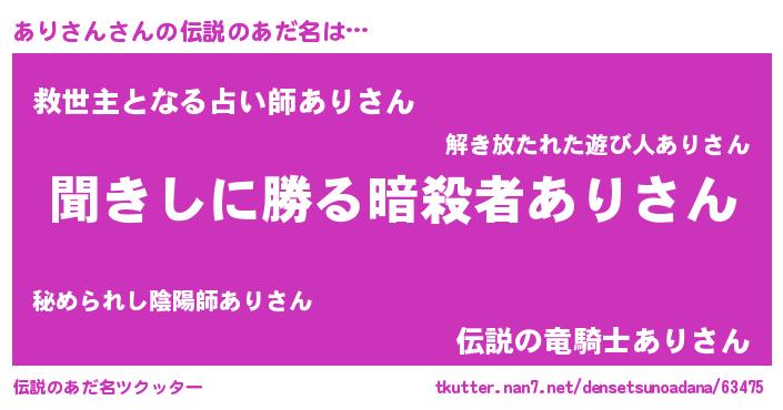 | 意味不明あだ名 | 『永久保存ありさん』『自称ありさん』 |