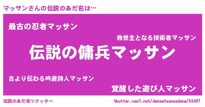 | ヒーロー風カッコイイあだ名 | 『スーパーマッサン』『究極戦士マッサン』 |
