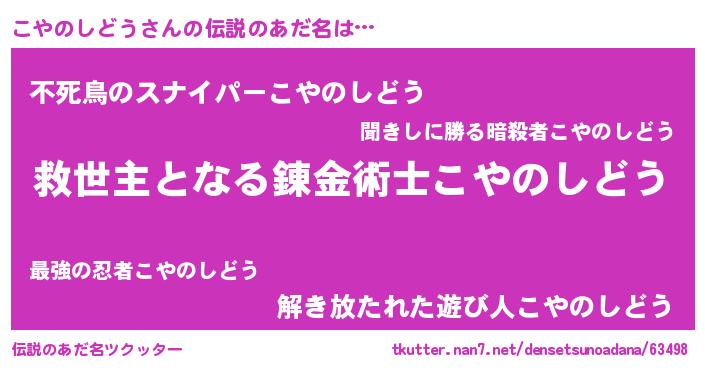 | 意味不明あだ名 | 『住所不定無職こやのしどう(95歳)』 |