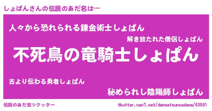 | 意味不明あだ名 | 『なめこ科しょぱん属』『自称しょぱん』 |