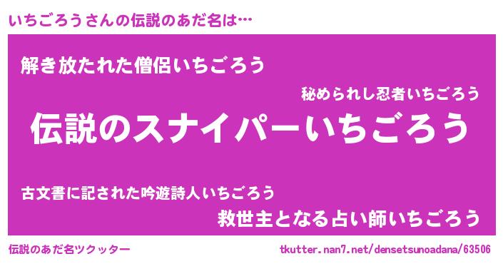 | 男性向けラノベタイトル風あだ名 | 『イチゴロウスレイヤー』 |