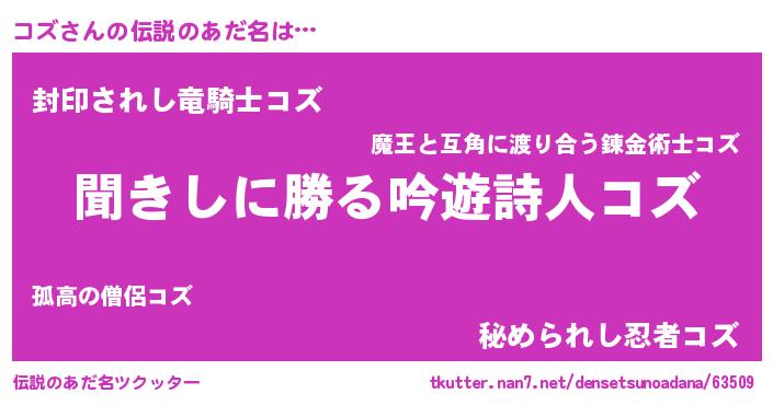 | ファンタジー風あだ名 | 『コズディッシュ』『コズフェル』 |