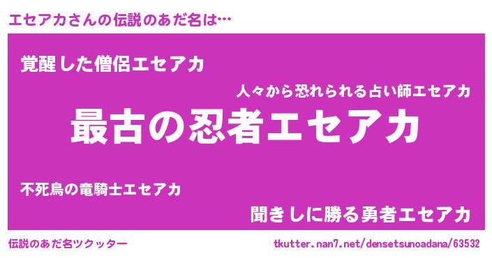 | ファンタジー風あだ名 | 『エターナルエセアカー』『ゼエセトゥ』 |