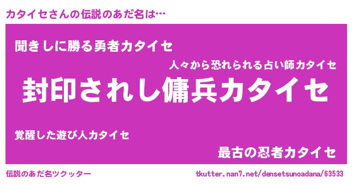 | ヒーロー風カッコイイあだ名 | 『スーパーカタイセ』『仮面カタダー』 |