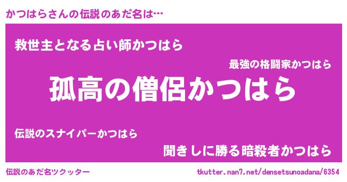 | 女子向けラノベタイトル風あだ名 | 『かつはらが死なない童話 林檎のかつはらの診療簿』 |