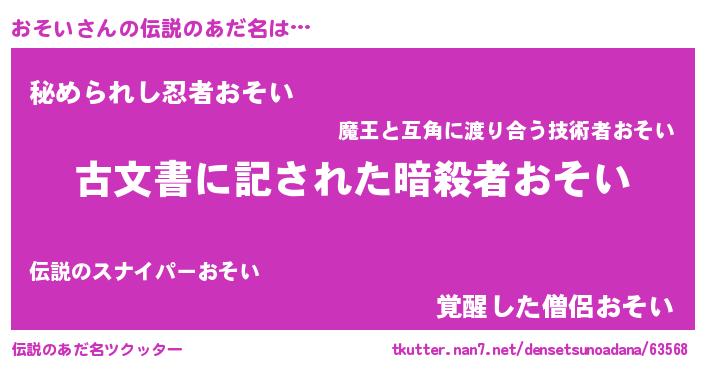 | ピコ太郎風あだ名 | 『ピコオ郎』『ピオ一郎』『オソ史郎』 |
