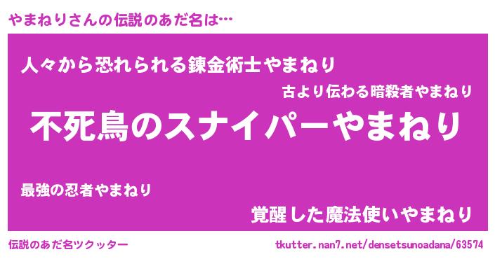 | 胡散臭い通販商品みたいなあだ名 | 『モテモテ間違いなし霊験あらたかなお札…その名も「やまねり」』 |