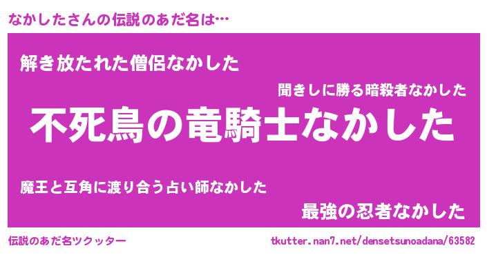 | 男性向けラノベタイトル風あだ名 | 『転生したらなかしただった件』 |