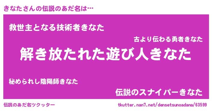 | ヒーロー風カッコイイあだ名 | 『銀牙騎士キナ』『正義の使者きなた』 |