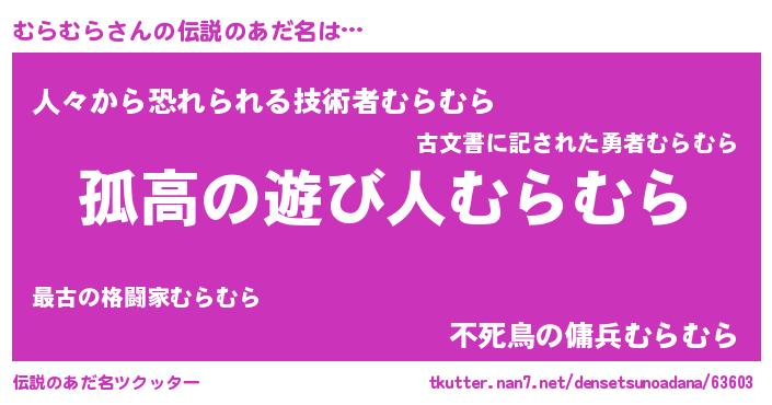 | ヒーロー風カッコイイあだ名 | 『仮面ムラダー』『天弓騎士ムラ』 |