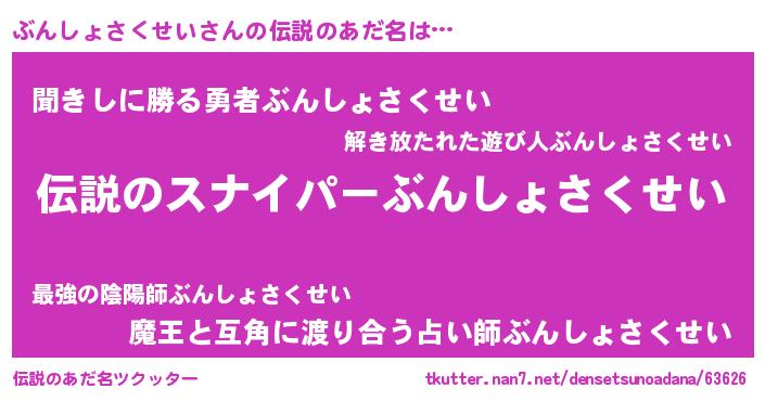 | ヒーロー風カッコイイあだ名 | 『仮面ブンダー』『ネオブンショサクセイ』 |