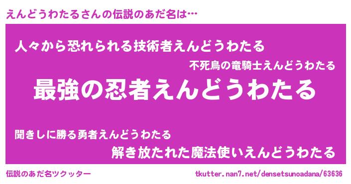 | 意味不明あだ名 | 『自称えんどうわたる』 |