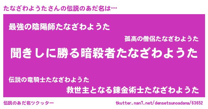 | 女子向けラノベタイトル風あだ名 | 『異世界で失敗しない100のたなざわようた』 |