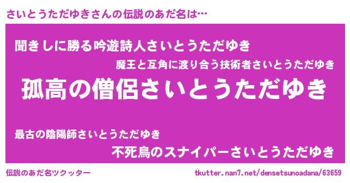 | ポケモン風あだ名 | 『サイキング』『ヒサイトウタダユキ』 |