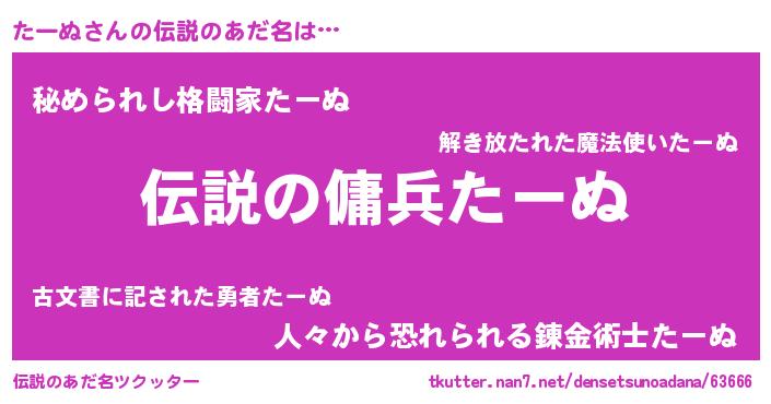| 男性向けラノベタイトル風あだ名 | 『緋弾のターヌ』『はたらくたーぬさま!』 |