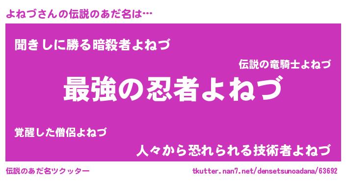 | 男性向けラノベタイトル風あだ名 | 『この素晴らしい世界によねづを!』 |