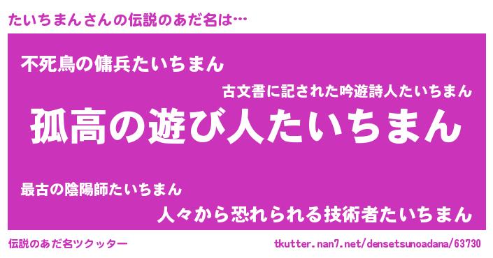 | 意味不明あだ名 | 『とにかく怪しいたいちまん』 |