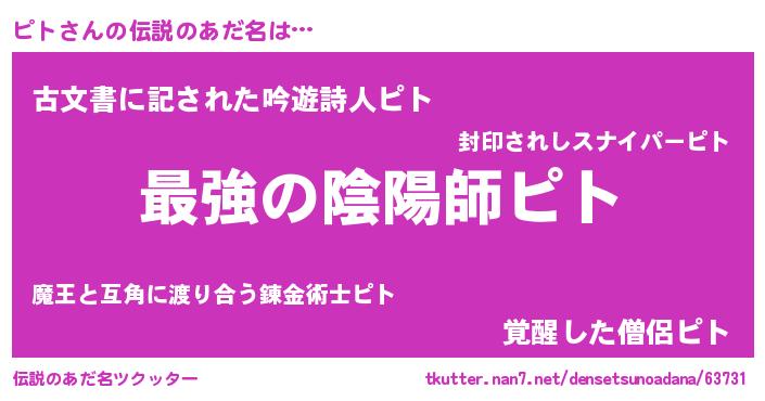 | 意味不明あだ名 | 『ピトフォーエバー』『永久保存ピト』 |